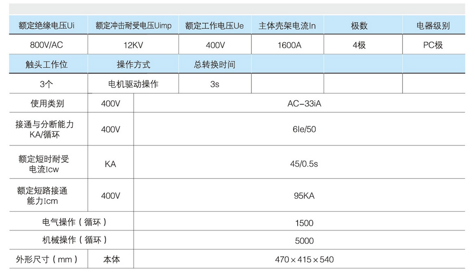机构设计机械与电气双重联锁,防止两路电源同时接通,动作准确,安全。